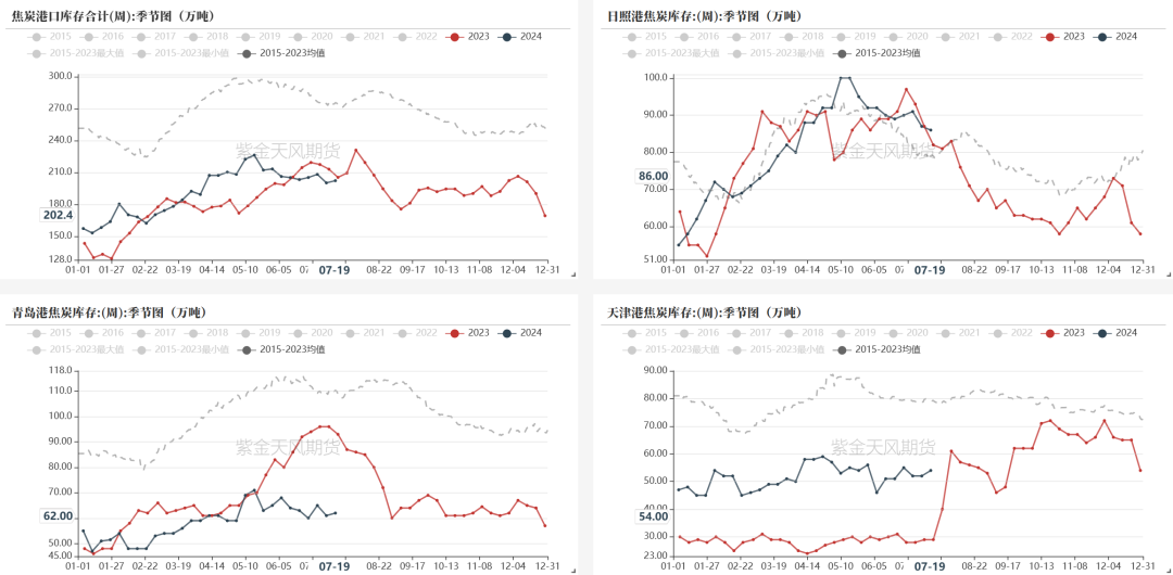 焦炭港口库存202.35万吨,周环比+2万吨。