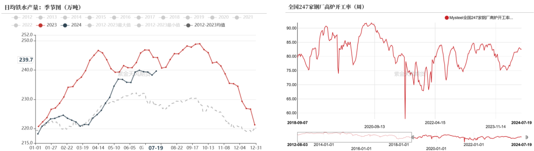 铁水及高炉开工仍在偏高位,煤焦刚需较好;目前钢厂盈利不佳,淡季生产积极性不高,七月后铁水可能呈现缓慢下滑。