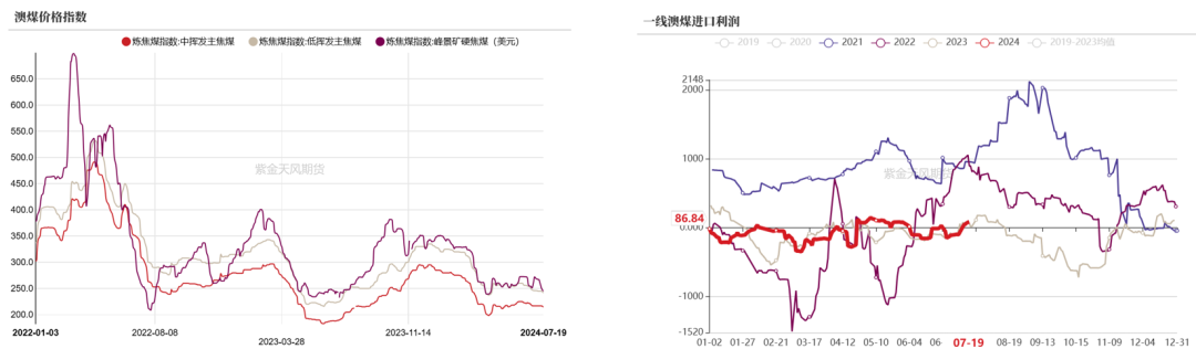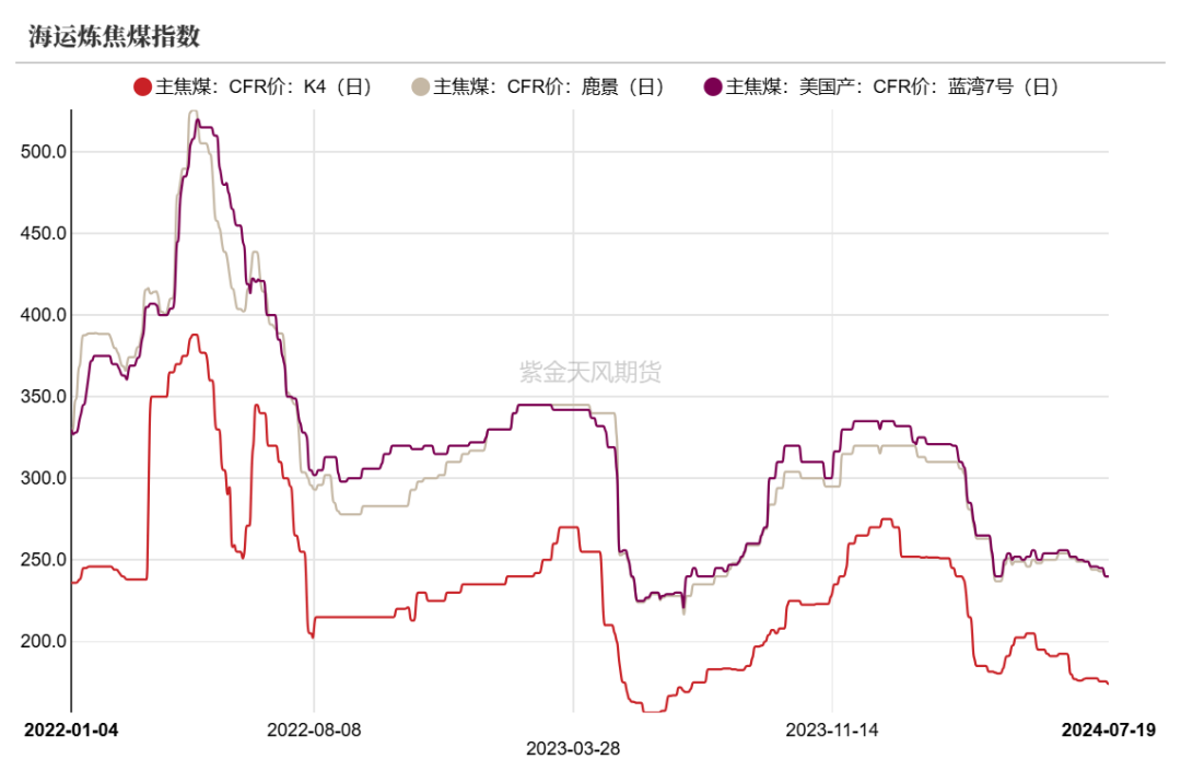 海运煤方面,海外远期现货量较为充足,国际终端高价成交意愿较弱,贸易商心态转弱,澳洲一线主焦煤远期报价在240美元/吨左右,目前澳煤进口利润较好,国内部分贸易商开始拿货;俄罗斯K4主焦最新CFR报价174美元/吨,周环比-1.5美元。
