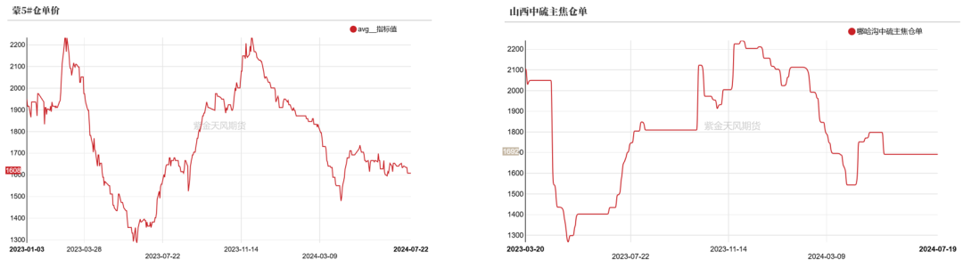仓单成本:中性山西中硫仓单在1650元/吨附近,蒙煤仓单1550元/吨附近。