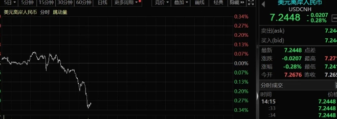 金融界7月25日消息人民币突然直线拉升!