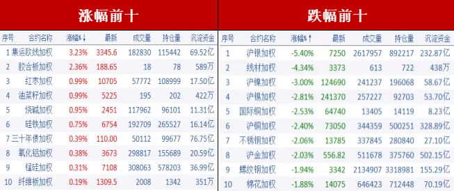 黑色系多数下跌,线材跌逾4%,不锈钢、螺纹钢跌逾2%。铁矿石后期价格走势的关键因素在于钢厂能否减产,若铁水产量持续处于高位,一旦钢材价格企稳,矿石价格可能会再度走强。