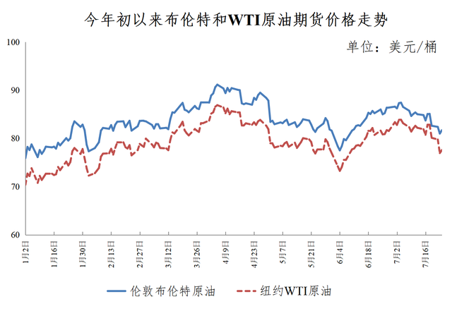 数据显示,7月11日,美油8月合约报82.84美元/桶,布油9月合约报85.50美元/桶。而在本轮成品油调价周期内,国际油价出现多次小幅下跌,7月23日,国际油价全线下跌,美油9月合约跌1.19%,报77.47美元/桶。布油9月合约跌1.03%,报81.55美元/桶。