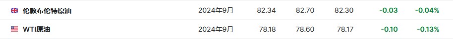 3. 截至发稿,WTI原油跌0.13%,报78.18美元/桶。布伦特原油跌0.04%,报82.34美元/桶。