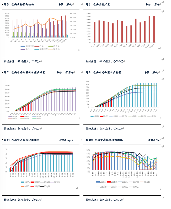 国际方面,2024/25榨季在主产国增产预期的背景下,预计全球供需格局正在向过剩转变,国际糖价重心已逐步下修。不过考虑到目前市场对巴西新榨季甘蔗压榨数量有所担忧,预计原糖价格在18美分左右或有所支撑。