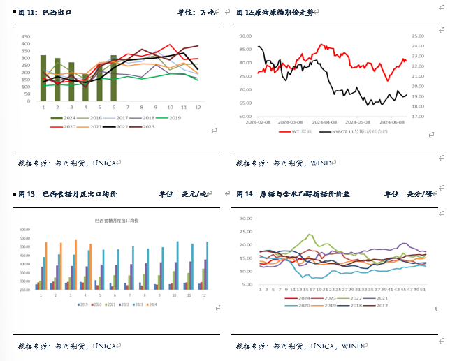 在全球糖市贸易供应聚焦巴西的背景下,巴西2024/25榨季提前开榨,天气、降雨预期转好,生产前景向好,原糖价格出现季节性回落、不过跌幅却高于往年同期,与此同时,升贴水亦有所下降。巴西制糖利润显著下滑,不过由于巴西新榨季食糖套保比例同比增加,预计新榨季巴西制糖比仍将维持相对高位。7月上半月巴西甘蔗压榨及食糖产量均不及市场预期,产量环比增幅亦逐渐下降,若单产受天气影响有所下降,或将导致甘蔗数量不及预期,糖厂或将面临提前收榨的情况。相反,在原糖盘面快速下跌至印度出口平价的情况下,原糖出口利润正在不断缩减,有消息称印度政府正在考虑额外80万吨的甘蔗乙醇生产,以及政府或批准额外的67万吨B重糖蜜生产乙醇的传闻。由此可见,印度或更倾向于乙醇生产。后续还需关注印度甘蔗乙醇生产情况及食糖出口。