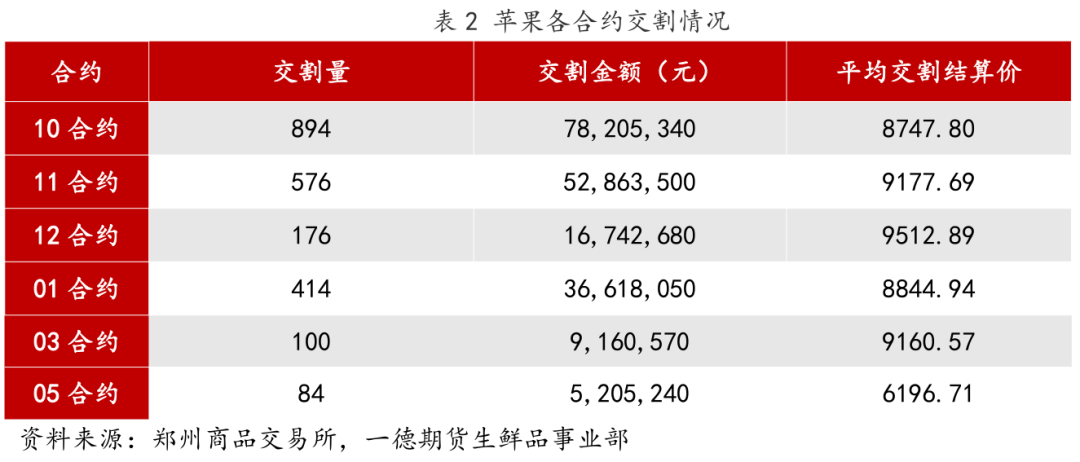 23/24产季好货偏少,可供交割品数量有限,交割成本重心上移。本产季苹果消费旺季不旺,随着消费窗口的逐渐收缩,产地客商及果农对后市持悲观态度,以果农货为主的中下质量货源阶梯式落价,现货市场行情偏弱,交割成本重心下移。