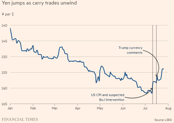 流行的“套利交易”的平仓推动了日元的复苏,投资者借入日元来购买收益更高的货币,并将日元的看跌押注推到了大约二十年来的最高水平。