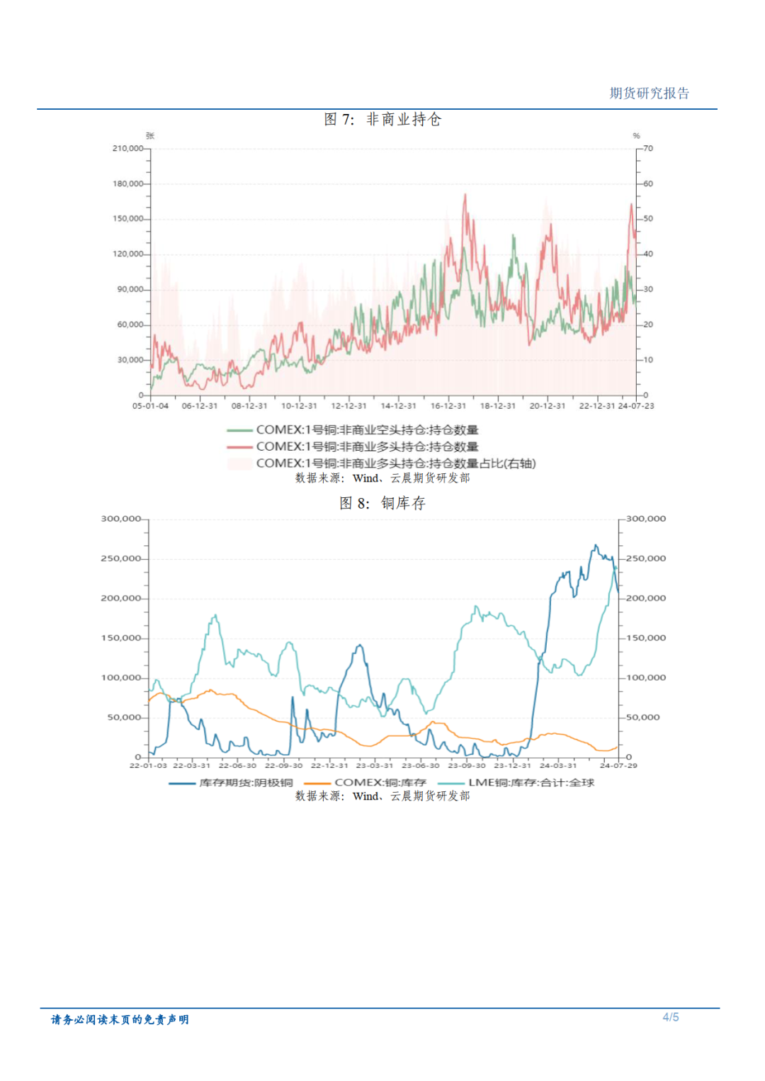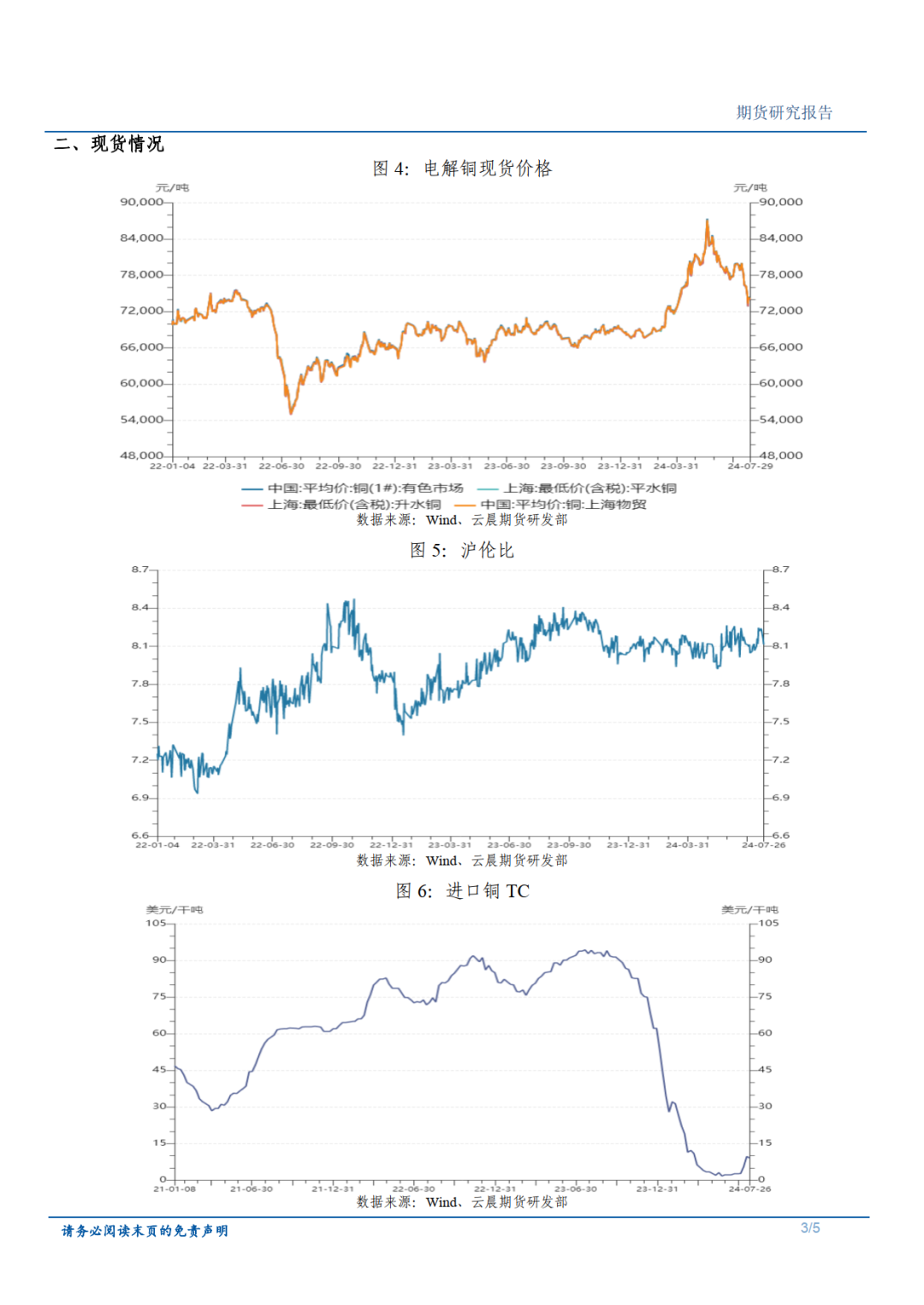 供需方面,供应端TC有所回暖,现货报盘增加但炼厂采购需求有限,供需矛盾暂有缓解,未来需进一步关注明年长单谈判价格,若仍在20美元附近、炼厂减产预期保持。需求端7月环比改善但弹性不大,近期价格下跌后库存降幅扩大,8月份还是有环比进一步改善的预期。但供需在目前状态下很难提供明显动力。