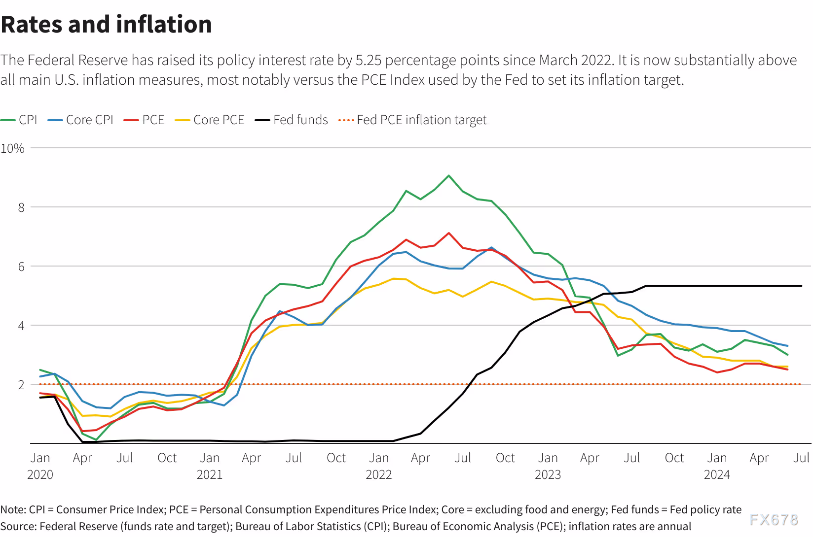 美联储在通胀飙升后曾加息以减缓经济增长,然后自去年7月以来一直将利率维持在当前的5.25%至5.50%区间,使目前的紧缩货币政策周期成为近几十年来最长持续期之一。