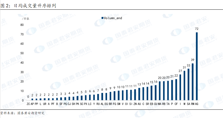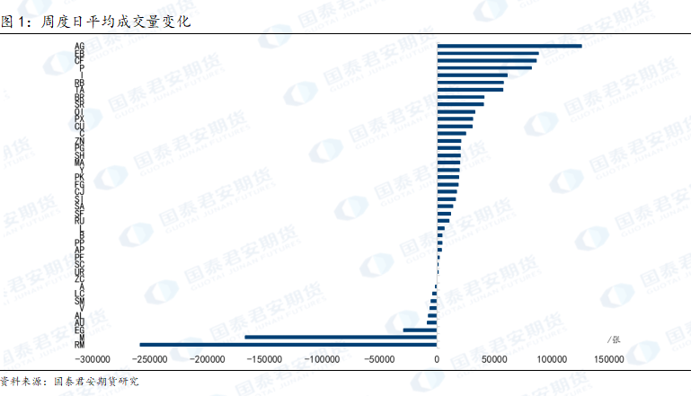 白银、苯乙烯和棉花、棕榈油期权的日均成交量增加超8万张,农产品板块的菜粕和豆粕期权的日均成交量减少超15万张,期末白银、菜粕和纯碱的交易量排名居前。