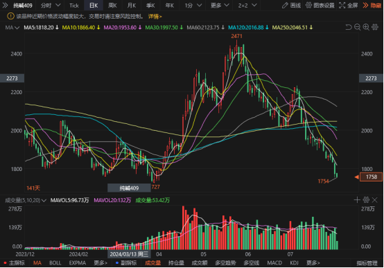 即便现货市场也未能幸免。目前纯碱企业送到报价在1900~1950元/吨,较月初下跌100元/吨。部分期现商报价甚至已低于1800元/吨,进一步加剧了市场悲观情绪。