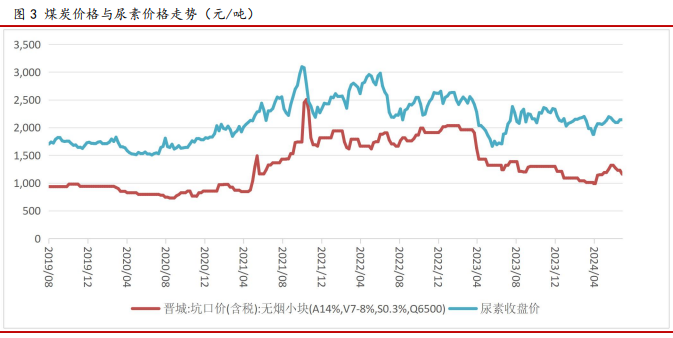 通过前面分析,由于煤炭在尿素等煤化工品种的生产原料成本中占比较高,因此,煤炭价格的波动也将会影响尿素等煤化工品种的价格波动,传导途径主要是通过成本端,即煤炭价格的上涨或者下跌会带动煤化工品种成本的上涨或下跌,并进一步影响煤化工价格的波动。以尿素为例,自2019年8月9日在郑州商品交易所上市以来,其价格与原料煤之一的晋城无烟煤价格相关性系数高达0.85,且煤价的每一轮大幅上涨和下跌都能和尿素价格形成共振,例如2021年煤价大涨和2023年煤价大跌过程中,尿素价格都同样跟随上涨和下跌,且行情启动和结束的时间点也都非常接近。