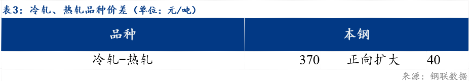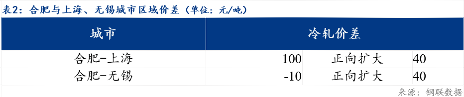 今日合肥-上海1.0mm马钢价差为100元/吨,较上一交易日扩大40元/吨;合肥-无锡1.0mm马钢价差为-10元/吨,较上一交易日扩大40元/吨;品种价差方面:冷热价差370元/吨,较上一交易日扩大40元/吨。