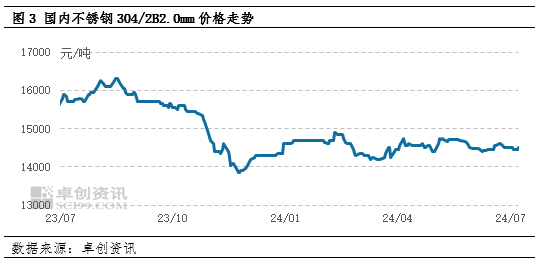 上文提到镍铁回流减速,导致镍铁供应减少,因此镍铁持货商多捂货惜售,导致不锈钢钢厂招标价格上涨。以最近两次钢厂镍铁钢招为例,最新价格报于995元/镍,较上次钢招价格上涨35元/镍,标准304板材镍含量在8%,镍铁价格上涨导致成本增加280元/吨。由于成本线上调,钢厂挺价积极性凸显,因此不锈钢价格出现震荡筑底后回升走势,其中7月23日,国内不锈钢现货价格回升50-100元/吨,这在情绪上拉涨原料,镍价出现跟随迹象,止跌机会比其他金属更大。