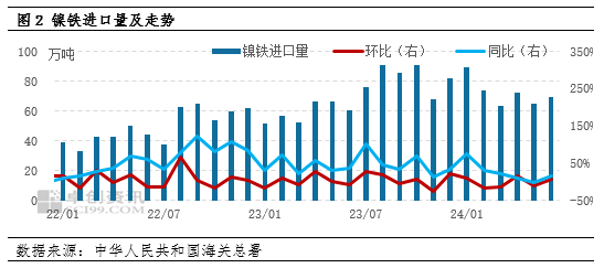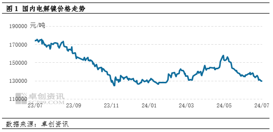 伴随印尼地区原料配额发放限制持续,上半年镍铁回流减速明显。海关总署数据显示,2024年上半年镍铁进口量仅有432.81万吨,较去年下半年减少60.1万吨,减少幅度在12.19%。2022年开始中国企业海外镍铁产线陆续建成投产,受到海外镍铁回流冲击,国内铁厂开工不足状态持续。因此上半年镍铁回流的减速,导致国内镍铁供应稍显紧张。作为替代品的镍铁供应减少,镍市整体供应压力得到缓解,同时镍铁钢招上涨积极,也在一定程度上为镍价形成支撑。