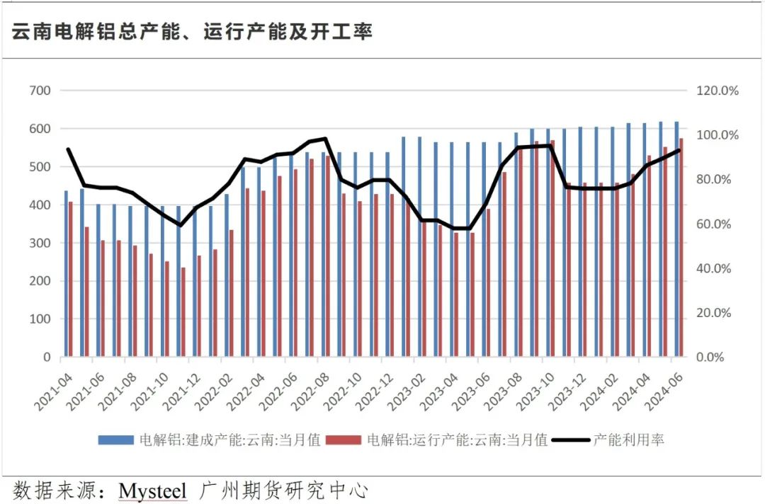 据SMM调研获悉,截止目前,云南地区电解铝前期停产产能全面完成复产,省内电解铝总运行产能达578万吨左右,同比增长90万吨左右。初步测算国内电解铝运行产能在4,334万吨附近,开工率近96.5%,电解铝供应良好。但云南省历年水电发电量占比均在80%以上。每年7-10月的丰水期发电量水电占比超过90%,枯水期水电贡献则下滑至60-70%。后期水电的季节性和“来水”的大小年仍有可能对电解铝产能释放造成较大扰动。