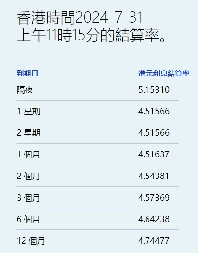 港元拆息月结日普遍走软隔夜息急涨72基点报5.1531%