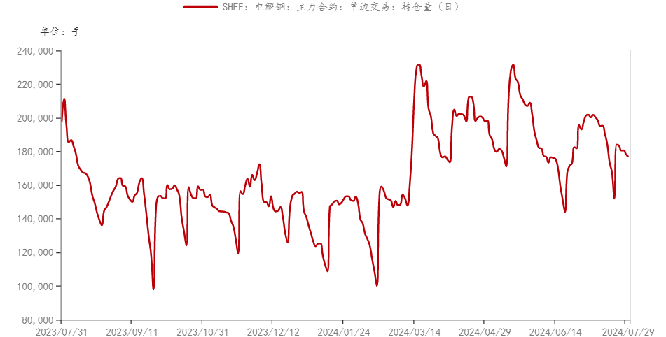 截至7月29日,铜2409合约持仓176894手,较上一周降3.9%。