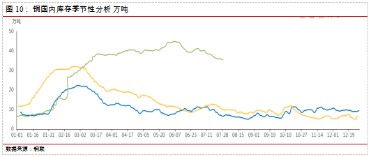 7月虽然延续去库趋势,但绝对值依然处在近几年高位,对于铜价形成压力