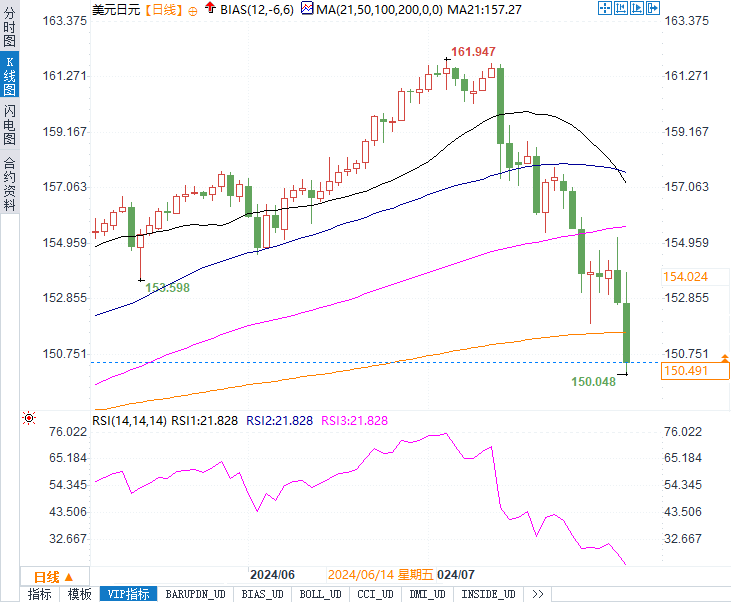 就在不久前,美元/日元汇率还曾达到接近162的高点,创下了38年来的新纪录。然而,日本央行的突然加息,以及随后的外汇市场干预,迅速改变了这一趋势。美元/日元汇率在短短四周内,从高点回落至150.05,这一水平是19周以来的最低点。