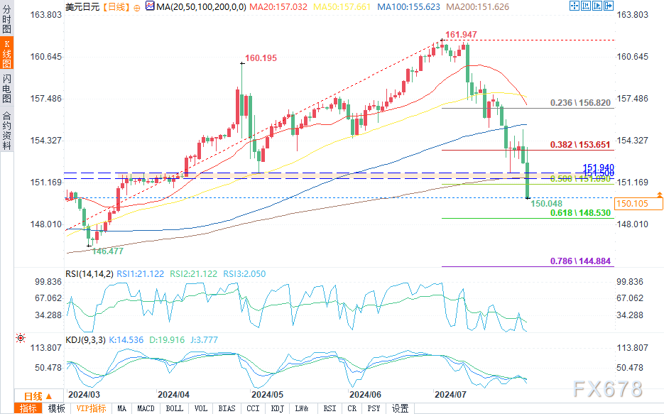 北京时间19:57,美元/日元报150.141/155,跌幅1.70%。