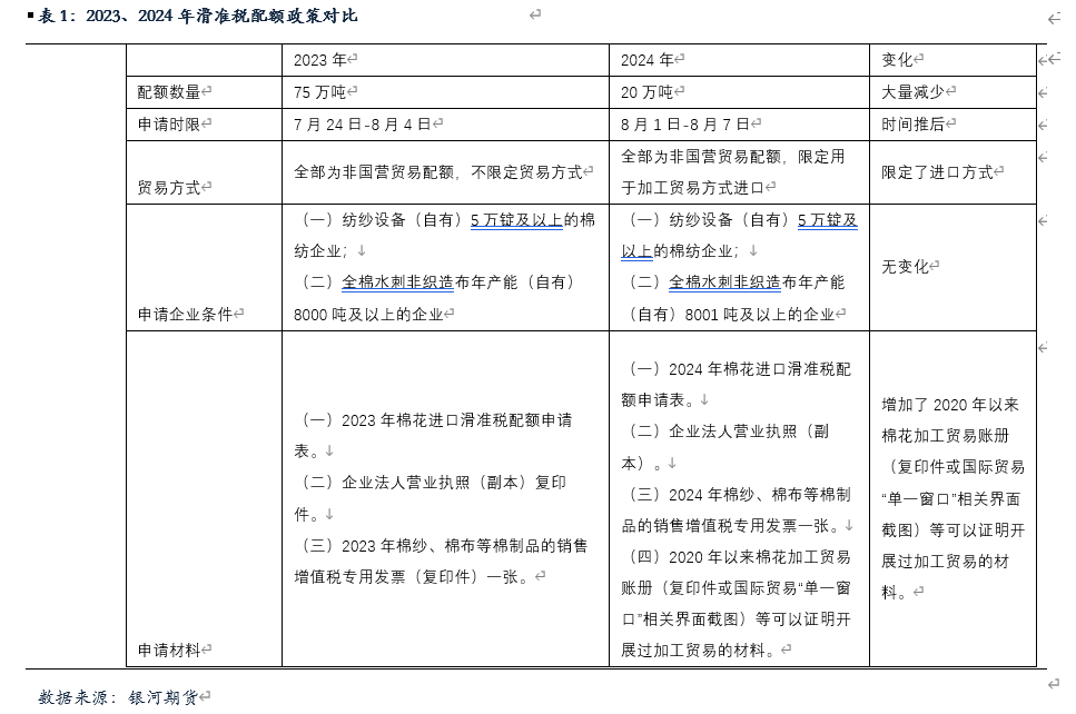 今日发改委发文“为保障纺织企业用棉需要,经研究决定,近期发放2024年棉花关税配额外优惠关税税率进口配额(以下简称棉花进口滑准税配额)20万吨,全部为非国营贸易配额,限定用于加工贸易方式进口。”