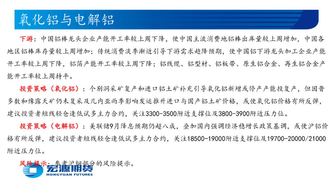电解铜、氧化铝与电解铝|国内经济稳增长政策基调更加明确,关注美联储周四凌晨是否释放9月降息信号