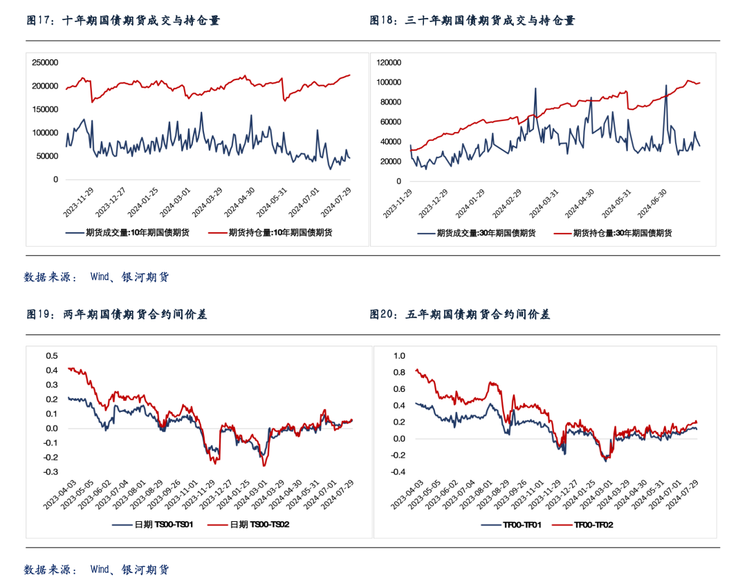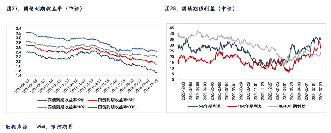 数据方面,7月官方PMI数据边际小幅转弱,其中制造业PMI录得49.4,较上月下行0.1个百分点,连续第3个月位于荣枯线下方,显示国内制造业景气度继续回落,对债市仍较为友好。受此影响叠加资金面转松预期,早间各期限期债合约继续创出新高。不过随后,出于对月初央行潜在政策干预的担忧,债市止盈压力渐增。与此同时,昨日市场风险偏好也有所抬升,权益、商品大幅走强,也对债市情绪有所压制。期债盘面价格从日内高点震荡回落,收盘涨跌不一。