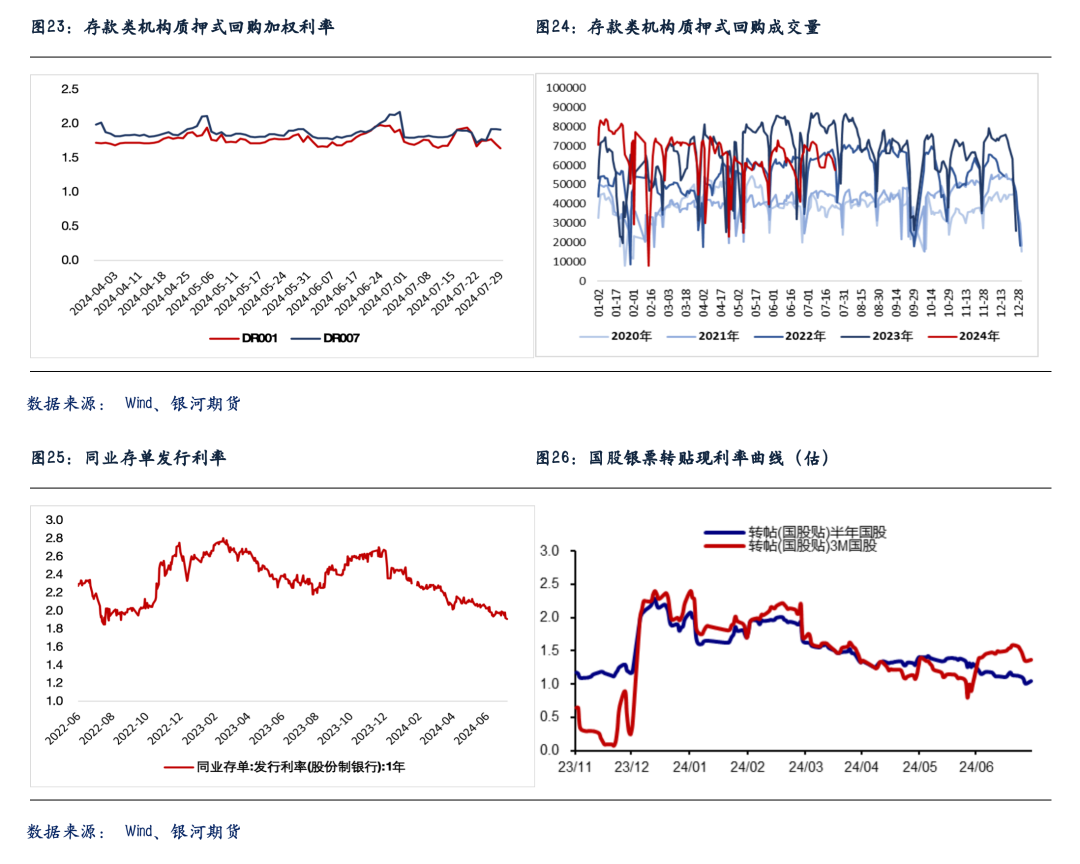 展望后市,政策利率调降后,临时正、逆回购构建的短端资金利率走廊在1.5%-2.2%,静态来看,短端收益率进一步下行的空间相对有限。与此同时,近期重要会议强调要实现年内增长目标,货币政策先行后,存量财政政策落地可能加快。8月政府债券供给有望迎来年内高峰,且央行或并不会降准对冲,因此市场资金面面临的潜在阶段性扰动也不容忽视。