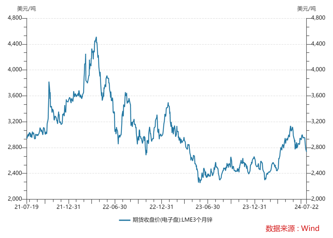 半年,锌价先抑后扬。LME锌价由年初的2660美元/吨,2月中旬最低下跌至2200美元/吨;之后一路飙涨,5月21日最高上涨至3185美元/吨,较2月中旬的最低价上涨了40%!之后锌价再度转为下跌,跌幅超10%,价格回落至3000美元/吨下方。国内锌价走势类似,年初价格21800元/吨,最低下跌至2万元/吨,之后最高反弹至2.54万元/吨。