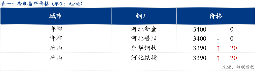 今日北方市场冷轧基料3.0*1010*CSPHC河北普阳价格为3400元/吨,较上一期价格持稳,河北纵横价格为3390元/吨,较上一期价格上涨20元/吨。镀锌方面,今日北方地区钢厂除天津新宇、东恒薄板、沧州中铁价格上涨20-30元/吨之外,其余钢厂价格指导价均持稳;轧硬方面,今日冷轧硬卷价格部分上涨10元/吨,镀锌与冷轧硬卷价差370元/吨,价差处于偏窄范围。市场方面,需求释放速度缓慢,价格偏弱运行的状态下,贸易商利润有所收缩,心态方面来看,终端项目接单不及预期,多以刚需采购为主,采购计划有缩量,大多数贸易商持谨慎偏悲观心态。