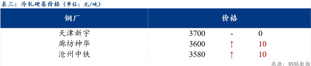 3、以上冷轧硬卷廊坊神华规格为0.27mm,其余为0.35mm;