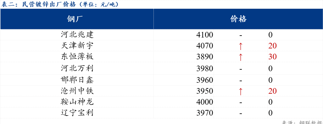 现北方地区民营镀锌板卷整体出厂价格在3890-4100元/吨。