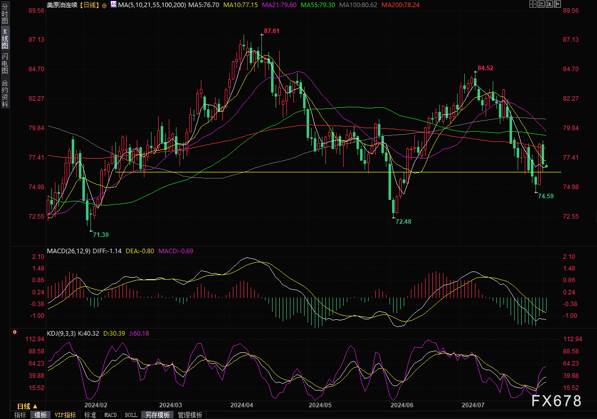 汇通财经APP讯——周五(8月2日)亚市盘初,国际油价窄幅震荡,美原油目前交投于76.68美元/桶附近。油价周四收低逾1美元,哈马斯领导人在伊朗遇害后对出现更广泛中东危机的担忧似乎并未影响全球供应,而且投资者重新关注需求问题。美国的多个经济数据表现不佳,令油价承压明显,尤其是制造业数据。