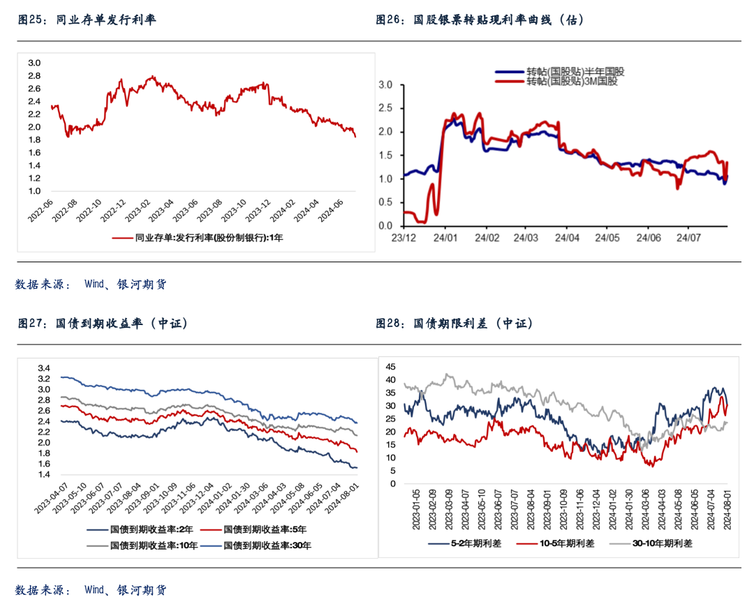不过,考虑到“稳增长”诉求下,后续财政政策落地可能加快,8月政府债券供给将迎年内高峰等因素,操作方面,单边建议投资者日内追高仍需谨慎。套利方面,“资产荒”格局缓和有限的情况下,建议可考虑适度参与做平10Y以内收益率曲线斜率。