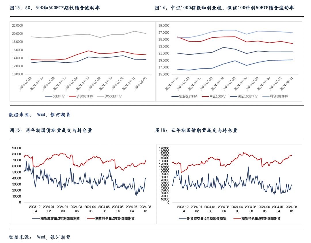 期权方面,多数期权成交量较昨天有所回落。隐波方面,多数品种隐波中枢较昨天变化不大。自6月以来隐波溢价逐渐收窄,标的实际波动有所抬升,预期未来隐波弹性将有所增加,且卖方策略delta对冲磨损也将上行。对于卖权策略来说,需要控制vega、gamma敞口,做好压力测试,减少日内对冲频率。