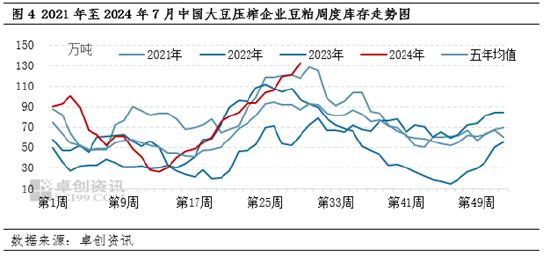 根据卓创资讯统计的2019年至今的中国豆粕现货均价走势看,豆粕现货价格的底部从2019年至2022年逐步抬升,整体震荡上行;2023年至今,走势整体震荡下行,且趋势中的反弹能量愈发减弱。从短期的单边走势分析看,豆粕价格上涨的主要动力来自供应端,其中包括国际产区的减产预期、国内大豆到港的延期、国内外的物流问题。而下跌趋势的形成,往往是供需共振的结果,亦或是,在航运周期的背景下,需求不佳更加凸显的供应端的实际宽松。