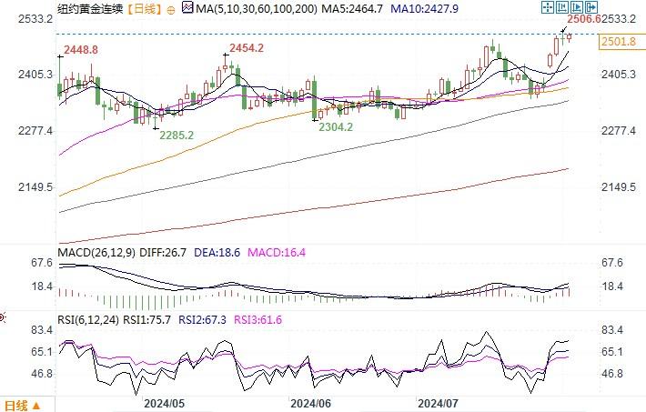 汇通财经APP讯——金价继续创出历史新高,周四(8月2日)COMEX黄金期货价格一度突破每盎司2500美元,最高触及2506.6美元/盎司,但一些分析人士表示,金价在中期已被完全消化。