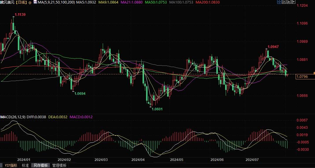北京时间8月2日13:35,欧元兑美元报1.0796/97
