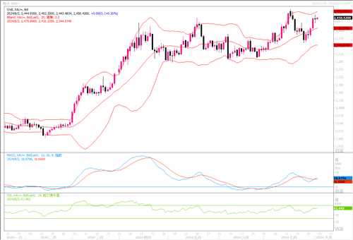 周四(8月1日),金价盘初曾继续上扬触及7月18日以来的最高点2462.08美元,尾盘收市阶段略回落,收盘于每盎司2,445.41美元。