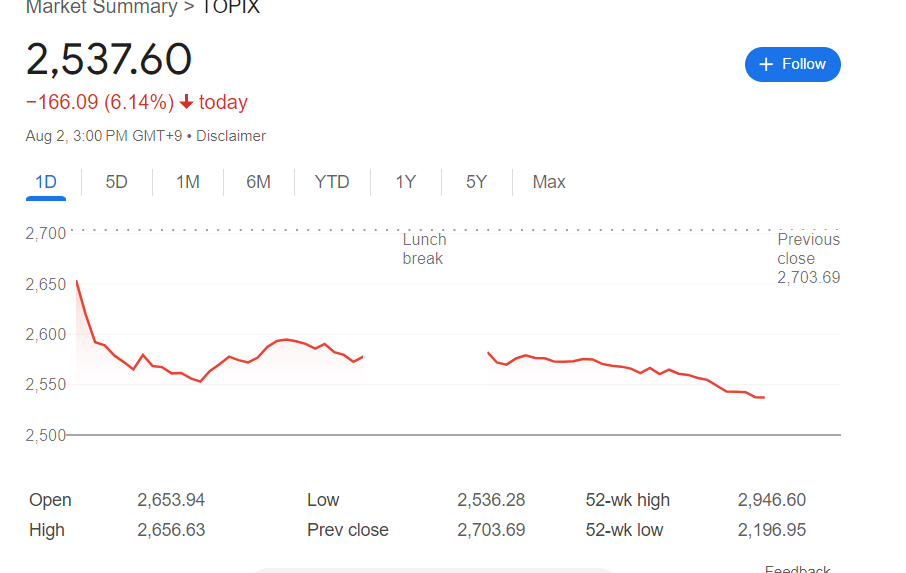 日经225指数跌破36000点,跌幅近6%;东证指数下跌6.1%,创下2016 年以来的最大单日跌幅!韩国综合指数跌近4%,中国台湾地区的股指跌超4%!