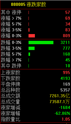市场共995只个股上涨,57只个股涨停,4193只个股下跌。