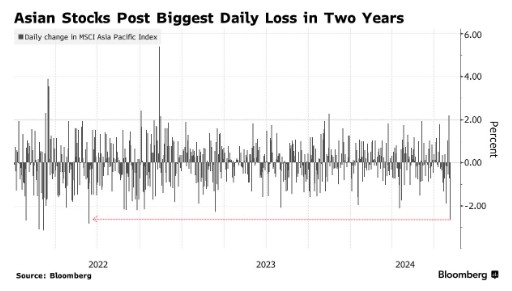 周五,亚洲股市跟随全球暴跌,日本股市出现自2016年以来表现最糟糕的一天。芯片制造商也加入了美国科技股的抛售行列,主要制造商SK海力士暴跌10%。欧股开盘后也出现下跌,欧洲斯托克600科技指数一度跌3.3%,至1月以来的最低水平。整体来看,在今晚公布一份可能至关重要的非农就业报告之前,交易员正在纷纷撤资。