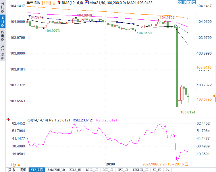 数据公布后,非农数据公布后,现货黄金价格短线飙升约22美元,最高触及2477.58美元/盎司,日内涨幅达到1.24%。COMEX黄金期货主力合约也录得1.37%的涨幅,报2514.70美元/盎司。同时,现货白银和COMEX白银期货也分别录得2.01%和2.64%的涨幅。这表明,在非农数据不及预期的情况下,市场避险情绪升温,投资者纷纷涌入贵金属市场。
