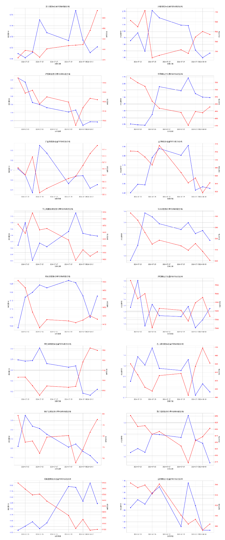 近一周(2024.7.29-2024.8.2)商品期货和期权市场整体受到国内外经济政策的刺激和供需因素的影响呈现不同涨跌走势。期货价格方面:本周黑色类、农产品&软商品类期货整体呈下跌趋势,能化类期货、有色类期货整体呈上升趋势。平值期权价格指数方面:本周除农产品&软商品类期货,黑色类、能化类、有色类期货整体涨势不一。