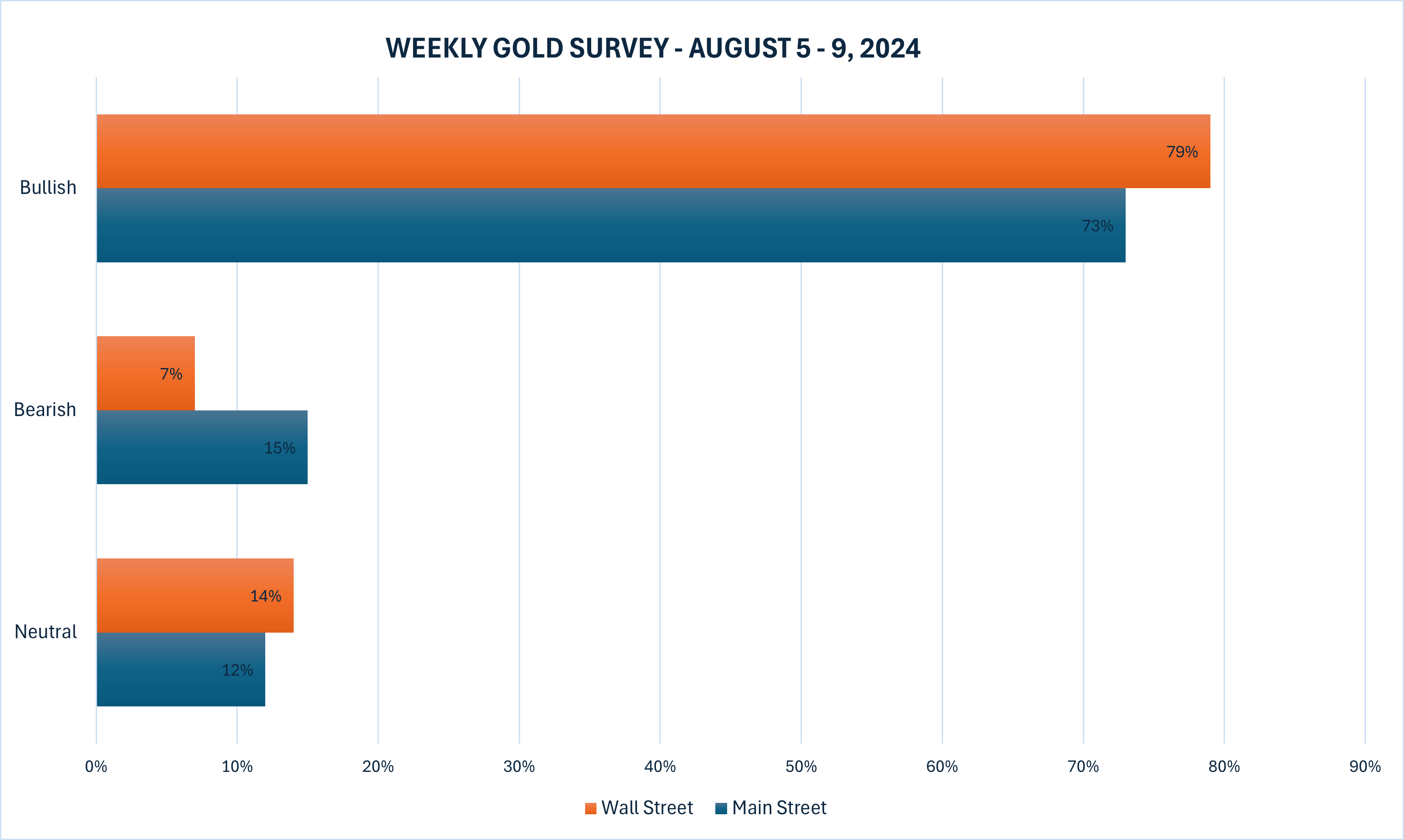 在Kitco News的周度黄金调查中,零售投资者普遍预期黄金价格将在下周继续上涨,而行业专家对黄金的上涨趋势更为坚定。共有14位分析师参与了此次调查,其中79%的专家预期黄金价格将进一步上涨,仅有7%预测价格下跌,14%的分析师认为黄金将呈现横向趋势。在线调查中,191位参与者中有73%的散户投资者看涨黄金,15%看跌,12%预计价格将呈现盘整态势。