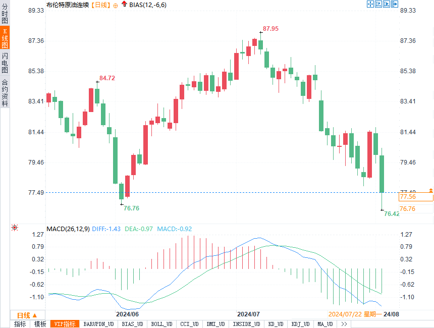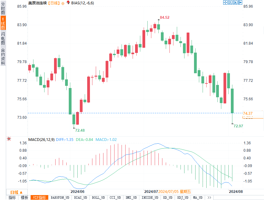 WTI9月原油期货周五收跌2.79美元/桶,跌幅接近3.66%,报73.52美元/桶。布伦特原油期货结算价下跌2.71美元/桶,收报76.81美元/桶,跌幅3.41%。两大基准原油期货价格盘中低点均下跌逾3美元/桶。