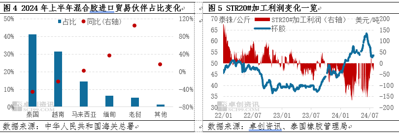 混合胶主要贸易伙伴进口量同比下滑前期减产以及进口高成本抑制进口量