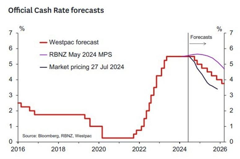 西太平洋银行现在预计,新西兰联储将在10月份将利率下调25个基点至5.25%,并预计11月将进一步降息25个基点,到年底将利率降至5%。